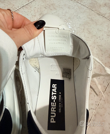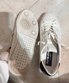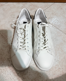 Sneaker in pelle bianca con dettaglio in pelle nera sul retro, indossate pochissimo vengo per inutilizzo, completo di scatola, dustbag e passaporto di autenticità