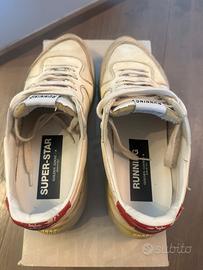 Golden goose originali taglia 41, calza 42 (io indosso 42) effetto invecchiato. Scarpe originali (posseggo ancora la ricevuta di acquisto) Completamente in pelle effetto invecchiata Usate ma tenute in ottime condizioni Possibile consegna a mano su firenze