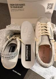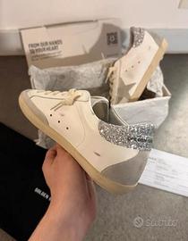 Vendo Golden Goose Superstar, taglia 41, nuove. Con scatola e accessori. Dettaglio argento glitter, eleganti e facili da abbinare. Spedizione veloce 👍