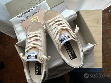 Golden goose pari al nuovo complete di accessori. Le scarpe sono taglia Eur 38. Vendo causa regalo indesiderato, a causa di una problematica al mignolo mi è difficile portare scarpe del genere