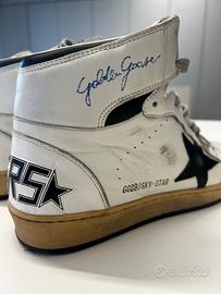 Sneackers GOLDEN GOOSE SKY STAR alte uomo in pelle colore bianco/stella nera nr.42. Ottime condizioni. Indossate una volta.