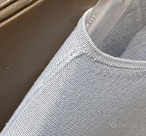 Golf, giacchetta marca UNITED COLORS OF BENETTON, vintage fine anni 90. Taglia S. Colore azzurro polvere. Collo rotondo, maniche lunghe. Apertura e chiusura con piccoli bottoni in madreperla grigi. Impreziosito ai polsini e alla fascia sul fondo del golf da perline tubolari in vetro colore argento lunghe 2 cm., sia nella parte frontale che posteriore. 100% cotone. N.B.: presenta un piccolo difetto di cucitura sulla spalla destra. (vedi foto) Misure: Lunghezza dal collo parte anteriore al fondo 45 cm., Lunghezza dal collo parte posteriore al fondo 55 cm., maniche lunghezza fino al polso 60 cm., larghezza polsino 10 cm., da ascella ad ascella 44 cm., da spalla a spalla 37 cm., larghezza del fondo del golf 40 cm. In più che buone condizioni. Si effettuano spedizioni NON da questo sito, x info contattarmi. Consegno a Milano, alle uscite delle fermate della metropolitana linea blu MM4 California, oppure linea verde MM2 S.Agostino, oppure linea rossa MM1 Conciliazione.