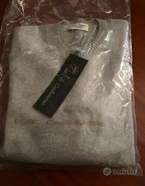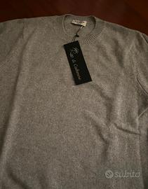 Pullover girocollo uomo 100% Cashmere Re di Cashmere - grigio chiaro mélange - taglia L - nuovo con cartellino Prezzo di listino 299 euro Vendo a 115€