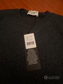 Golf da uomo a girocollo color grigio scuro mélange nuovo 100% puro cashmere taglia L Nuovo con cartellino Prezzo di listino 299€ Marca il re del Cashmere