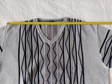 Golf, maglione, pullover collo a V, morbida ciniglia, fantasia originale. colore grigio con linee blu e nere. Nuovo. marca Pitran. taglia 6XL. Altre fotografie anche con dimensioni sono disponibili. Vedi tutti i miei capi taglia grande in vendita.