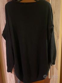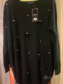 golf nero lungo finale arrotondato elegante con perline applicate nella stoffa che non si staccano e pon pon finto pelo taglia L abbondante molto morbido ed elasticizzato