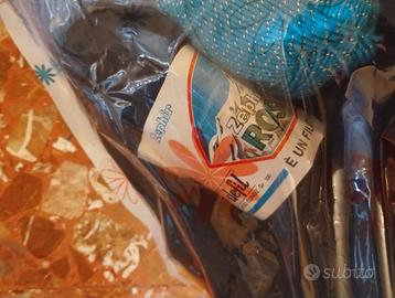 Gomitoli e matasse di lana vari colori e varie pesantezze.