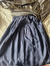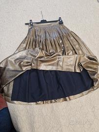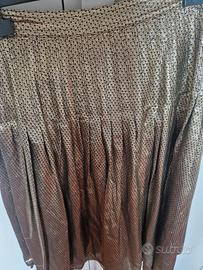 gonna di valentino con pieghe di seta oro pois piccoli neri, leggerissima, come nuova. taglia 42 lunghezza a sotto il ginocchio.