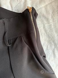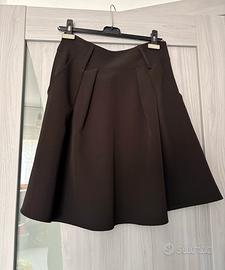 Gonna a pieghe con taglio ad A di color nero. - Vita alta. - Chiusura zip laterale. - Tasche laterali. - Passanti sul cinturino in vita.