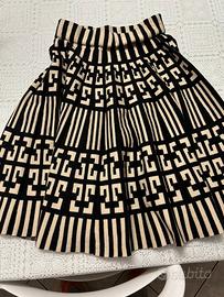 Gonna di lana nera e beige a pieghe con motivi geometrici. Lungezza gonna: 56 cm Taglia: 44 Elastico in vita Usata solamente 2 volte!