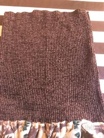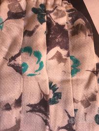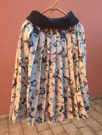 Gonna a pieghe di Pancaldi in crepella di pura lana, cintura a vita in maglia che puo' trasformarsi in corpetto, fantasia beige, grigio e verde,