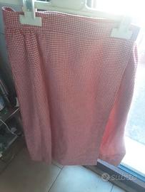 Presenta un classico motivo a quadretti Vichy (gingham) in bianco e rosso. E' una gonna a portafoglio o con una linea svasata liscia, tipica delle collezioni prêt-à-porter della maison Guy Laroche L'etichetta bianca con il logo "G" e la scritta "Guy Laroche Paris" indica che si tratta di un pezzo originale, risalente agli anni '80. Essendo un capo vintage di un designer storico, ha un valore collezionistico per gli appassionati di moda. L'etichetta dice 4 francese. Se non dovesse vestire 44, si può tranquillamente allargare spostando i bottoni fino alla 48. Lunga 75 cm. Spedizione a carico dell'acquirente