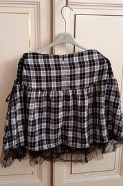 Originale gonna a scacchi nera e bianca, con dettagli di lacci e tulle nero. Taglia L. Consegna ad Ancona e dintorni