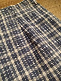 Gonna aderente a righe blu su sfondo bianco. La gonna veste aderente alle forme del corpo ed è molto semplice. Le uniche decorazioni sono nella parte posteriore con un spacco centrale in fondo e le plissettature invisibili sia sul davanti sia sul retro. Questa gonna si chiude con la cerniera a scomparsa sul retro.
