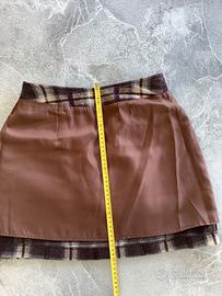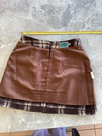 Gonna a quadri colori sul marrone ,beige, bordeaux con due cerniere per finte tasche sul davanti e zip sul retro. 66 cm. di giro vita e 40/41 di lunghezza. Non ha alcuna imperfezione, come nuova.