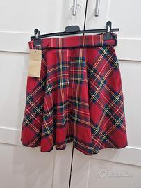 Gonna a quadri (tipo kilt scozzese), taglia XS, colore rosso/verde con cintura in vita