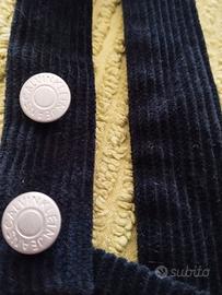Vendo gonna a salopette in velluto blu scuro a costine piccole di Calvin Klein Jeans. Usata pochissimo. Le bretelle anno la possibilità di due misure.