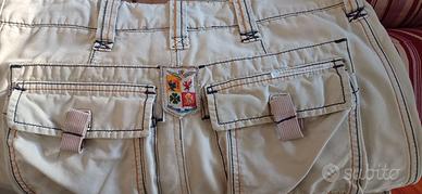 Con passanti per inserimento cintura, pratiche chiusure per tasche (laterali e posteriori) con fettuccia ad incastro. Usata pochissimo ed in OTTIME condizioni. Tessuto in robustissimo cotone. Taglia 44 italiana.