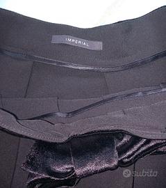 Gonna donna Imperial nera Taglia XS. Con piegoni, ben rifinita, cerniera laterale, cinturino in velluto con fiocco. Lunghezza 53 cm circa, vita 35 cm circa.