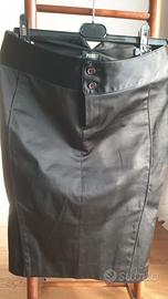 Gonna lunghezza al ginocchio Pass 88 Colore Nero Doppio spacco davanti Chiusura anteriore con cerniera e doppio bottone Tasche finte dietro con bottoni