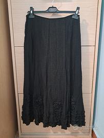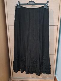 Gonna nera lunga fino alle caviglie, elastico in vita, chiusura con cerniera sul retro, fantasie in rilievo con fiori.
