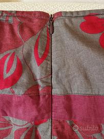 Bellissimo e originale modello gonna della "MEXX", con una fantastica stampa floreale in toni di color Tortora/Bordeaux/e Rosso. La gonna, foderata in tinta,aderente sui fianchi da dove presenta ampi piegoni che le conferiscono un aspetto elegante e fluido. Tessuto leggero e piacevole da indossare. Perfetta per occasioni speciali o per un look casual chic.