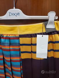 Gonna nuova con cartellino, tessuto elasticizzato 100% viscosa , a vita alta, plissettata, con un mondo di colori e fantasia per personalità uniche.