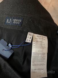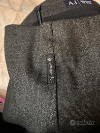 Gonna Armani Jeans grigia a tubino con cerniera dietro e apertura davanti con arricciatura. Tessuto invernale taglia 48