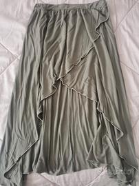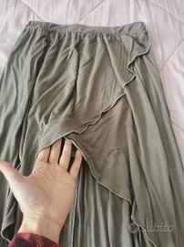 Cerchi il capo ideale per passare dal giorno alla sera con stile? Questa gonna asimmetrica color verde salvia è quello che fa per te! Grazie al taglio particolare, unisce la comodità di un tessuto morbido e fluido a un design sofisticato che slancia la figura. È il compromesso perfetto tra casual e ricercato. L'orlo asimmetrico crea un movimento dinamico e femminile ad ogni passo. Elastico in vita per vestirti senza stress. Abbinala a una t-shirt bianca e sneakers per un look da giorno, o a un top elegante e tacchi per un aperitivo. Taglia XS, mai indossata.