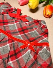 Gonnellina a quadri per bambina, perfetta per ogni occasione. Elastico morbido in vita. Fiocchetto decorativo con perlina e nastro rosso sul davanti.