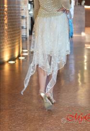 🖤Gonna beige in pizzo e raso corta con coda asimmetrica.