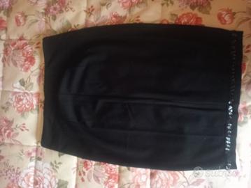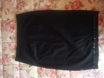 Gonna nera aderente Benetton – taglia S Gonna elasticizzata aderente nera Benetton, modello bodycon, lunghezza sopra il ginocchio. Vestibilità slim che valorizza la silhouette grazie al tessuto elastico. Dettagli: Inserti con paillettes sul fondo e lungo i lati Tessuto elasticizzato e confortevole Colore nero classico, facile da abbinare Taglia: S Composizione: viscosa, poliammide, elastan (come da etichetta) Condizioni: buone, con normali segni d’uso ma senza difetti evidenti Perfetta sia per outfit eleganti che per serate o occasioni speciali ✨