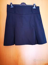 Gonna blu a vita alta, con due bugie davanti e due dietro, cerniera sul lato sinistro. Taglia L, marca Specchio.