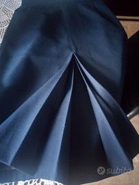 gonna blu scuro vintage anni '80 elegante a tubino caratterizzata da doppio sfondo piega davanti 65% poliestere 35% viscosa con fodera 100% poliestere giro vita cm 64 lunghezza cm 63 taglia 40IT made in Italy Tessuto di ottima qualità