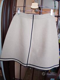 Deliziosa gonna color cammello con interni nero. taglio svasato con una delicata linea nera sul retro.la cinta leggermente elastica consente una buona vestibilità. Realizzata in Italia con preziosi materiali 31% cashmere, 14%seta, 33% lana vergine. Misure Vita cm 33 lunghezza cm
