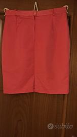 Vendo gonna da donna con spacco e cerniera sul retro, foderata e completa di passanti per cintura taglia 48 in stoffa tipo gabardine composizione 65% poliestere 35% viscosa colore Arancione.