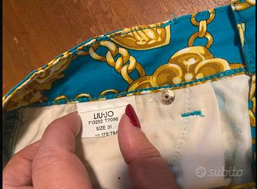 gonna corta Liu Jo verde e oro. taglia 31. vita 85, lunghezza 34,5.