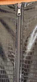gonna in ecopelle a trapezio . taglia 44 potete vedere le misure in foto. mai utilizzata. apertura nel centro davanti con zip