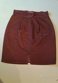 Morbida gonna corta, in tessuto scamosciato sintetico, colore bordeaux/vinaccia. Ha la forma a tulipano con zip e piccolo spacco su dietro. Taglia S, lunghezza cm.49, larghezza vita cm.35