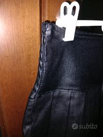 gonna corta nera in similpelle a pieghe con orlo in pizzo. chiusura laterale con zip. usata un paio di volte quindi praticamente come nuova. taglia S.