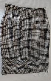 Gonna di pura lana vergine con fantasia pied de poule e cintura di camoscio firmata Fiorella Rubino.