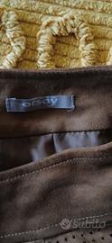 gonna con effetto scamosciato,pannelli centrale liscio, laterali a forellini colore Cognac ,taglia 32 ,lunghezza cm 52 " Orsay "