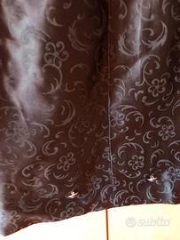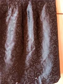 Gonna elegante a tubino Patrizia Pepe in misto viscosa, colore nero lucido con fantasia damascata opaca, taglia 40, foderata con spacco dietro, 2 bottoni decorativi davanti. Presenta qualche piccolo forellino richiuso sapientemente da una sarta, che si confonde nell’effetto positivo/negativo dei disegni. Ottima vestibilità: vita cm. 37, lunghezza cm. 60.