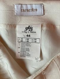 Gonna dalla linea semplice ed elegante color panna con trama in rilievo. Lunga 71 cm