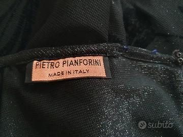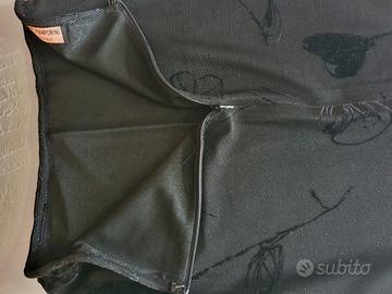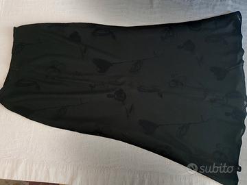 gonna elegante da sera lunga nera in viscosa elasticizzata foderata con motivo floreale nero su nero lucido/opaco