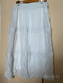 Splendida gonna estiva leggera e ampia, foderata, con applicazioni di merletto. Elastico in vita. Non ci sono etichette ma veste una 46/48 e anche 50, vedere misure in foto. Moda Positano.
