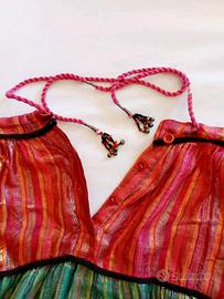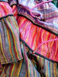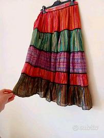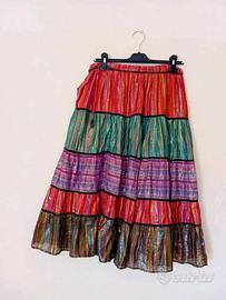 SIRACUSA. Vendo a 20 euro originale gonna vintage multicolor. Circonferenza cm 75. Lunghezza cm 77. Tre bottoni sul fianco e un cinturino in tessuto, con sonagli. Cinturino regolabile. Rayonne 100 %. Made in India. Taglia M. Condizioni buone-ottime come da foto. Spedizione disponibile.