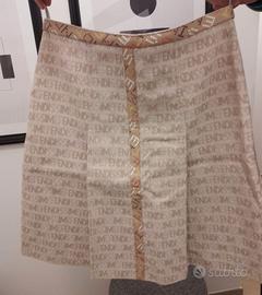 Gonna a pieghe al ginocchio FENDISSIME tessuto logo jaquard sui toni del beige. Molto bella e iconica primi anni 2000, mai indossata. Capo vintage di una linea giovanile di Fendi che non produce più. Introvabile. Taglia 40 IT ma veste di più.