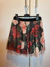 Gonna elegante floreale in tulle da ragazza a strati + fodera taglia S, con elastico in vita