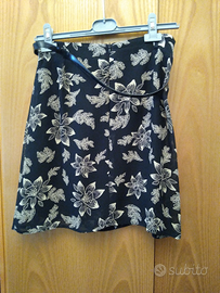 Gonna fondo nero con fiori bianchi. Tessuto leggero. Foderata. Cintura in vernice nera. Taglia 44. Ottimo stato.